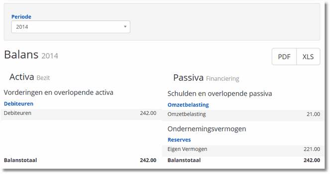 Selecteer een fiscale periode waarover je de balans wilt inzien.