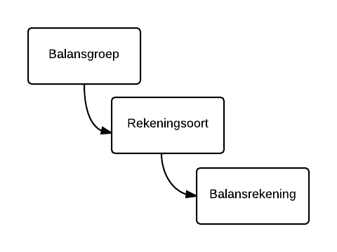 Om de verschillende rekening(soort)en te groeperen op de balans wordt gebruik gemaakt van een vaste indeling. Dit is dezelfde indeling die de belastingdienst hanteert in het aangifteprogramma